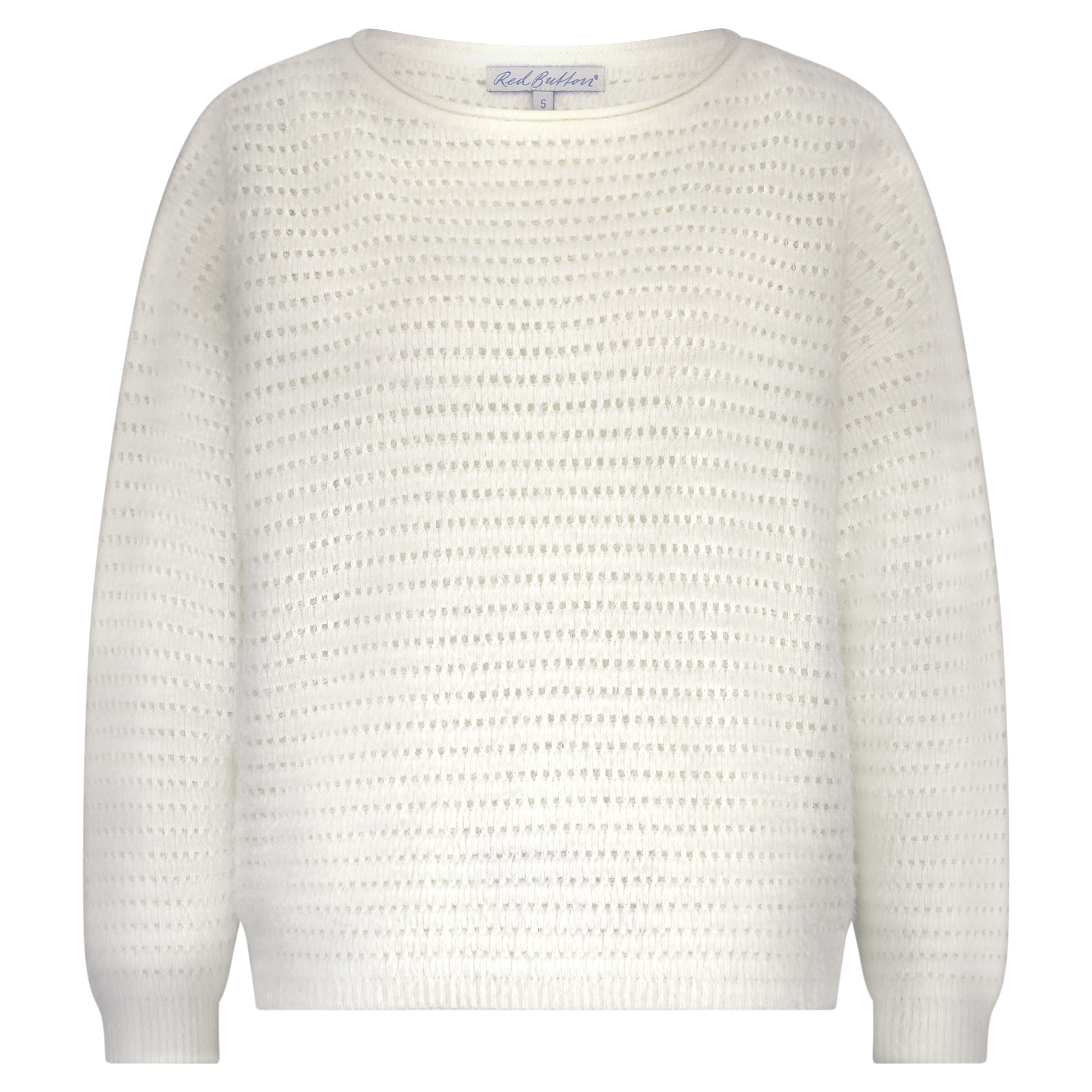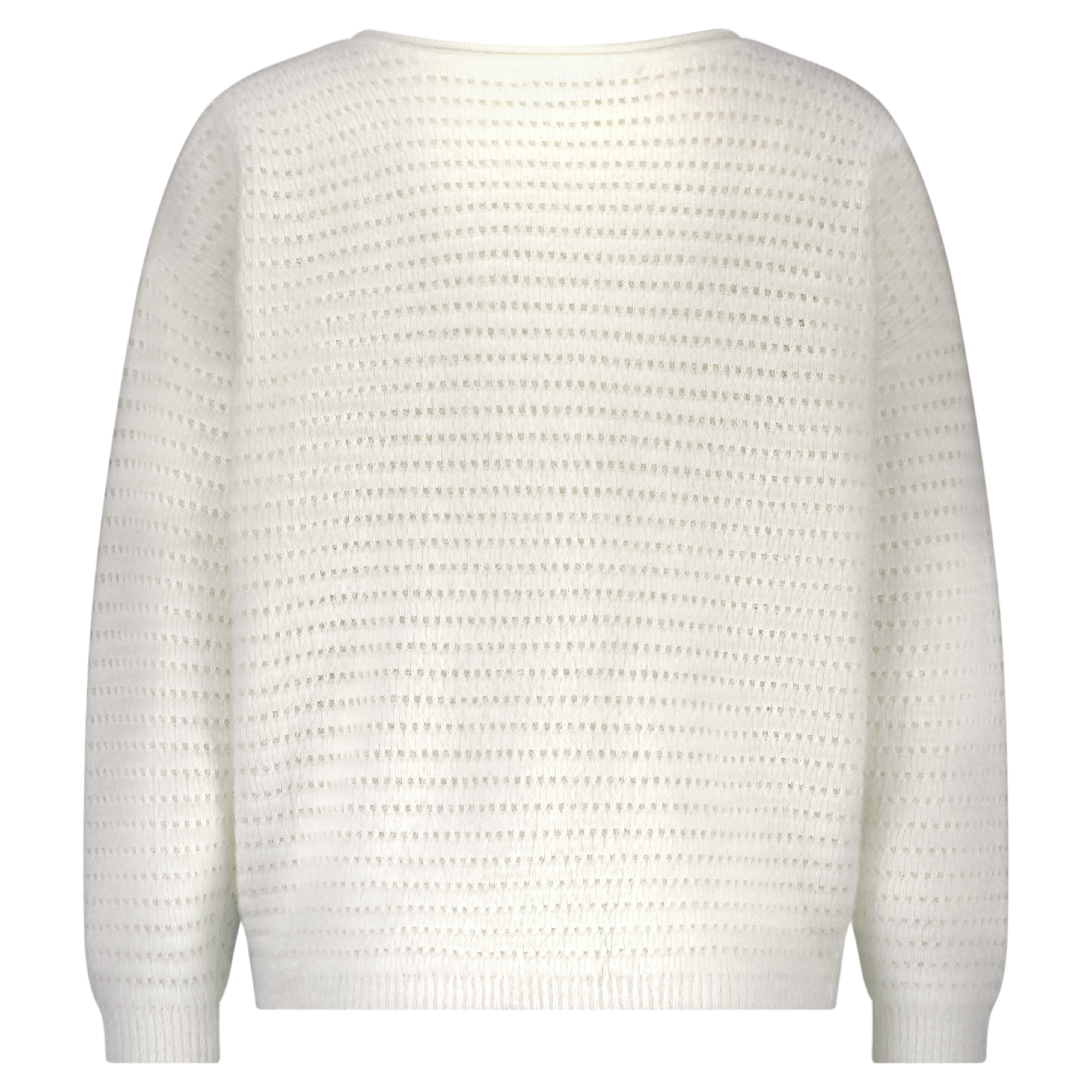 De Fluffy Ajour Sweater is een ajour gebreide zachte trui met een ronde hals en lange mouwen. De trui heeft een geribde boord aan de onderkant en bij de mouwen en is verkrijgbaar in de kleuren black, clay, warm taupe & white.