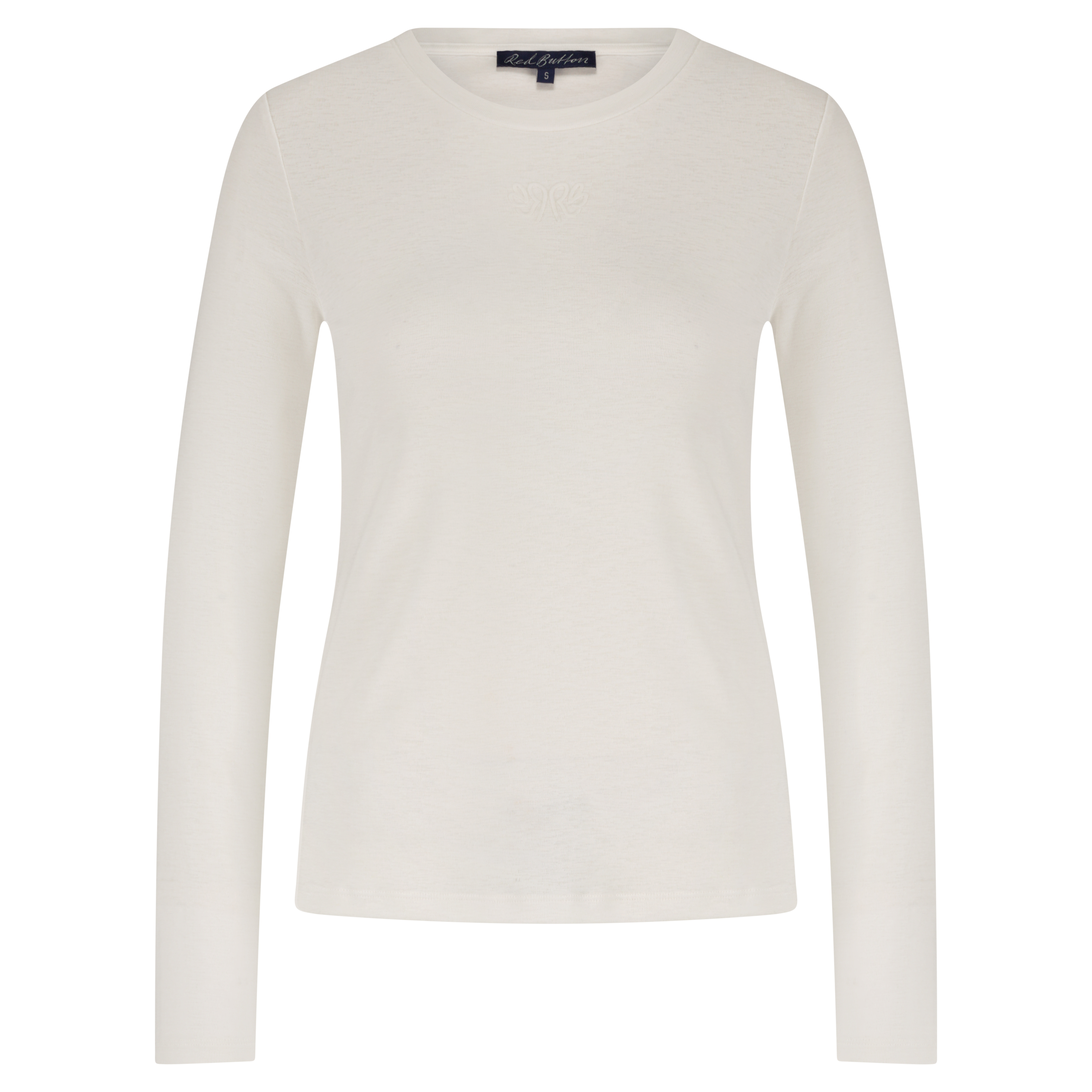 De Tee RB Logo is een top met lange mouwen en een ronde hals. De top is gemaakt van een fijn breisel en heeft een klein geborduurd Red Button logo op de borst. De Tee RB Logo heeft een geribde boord bij de hals en is verkrijgbaar in de kleuren light latte, black & offwhite.